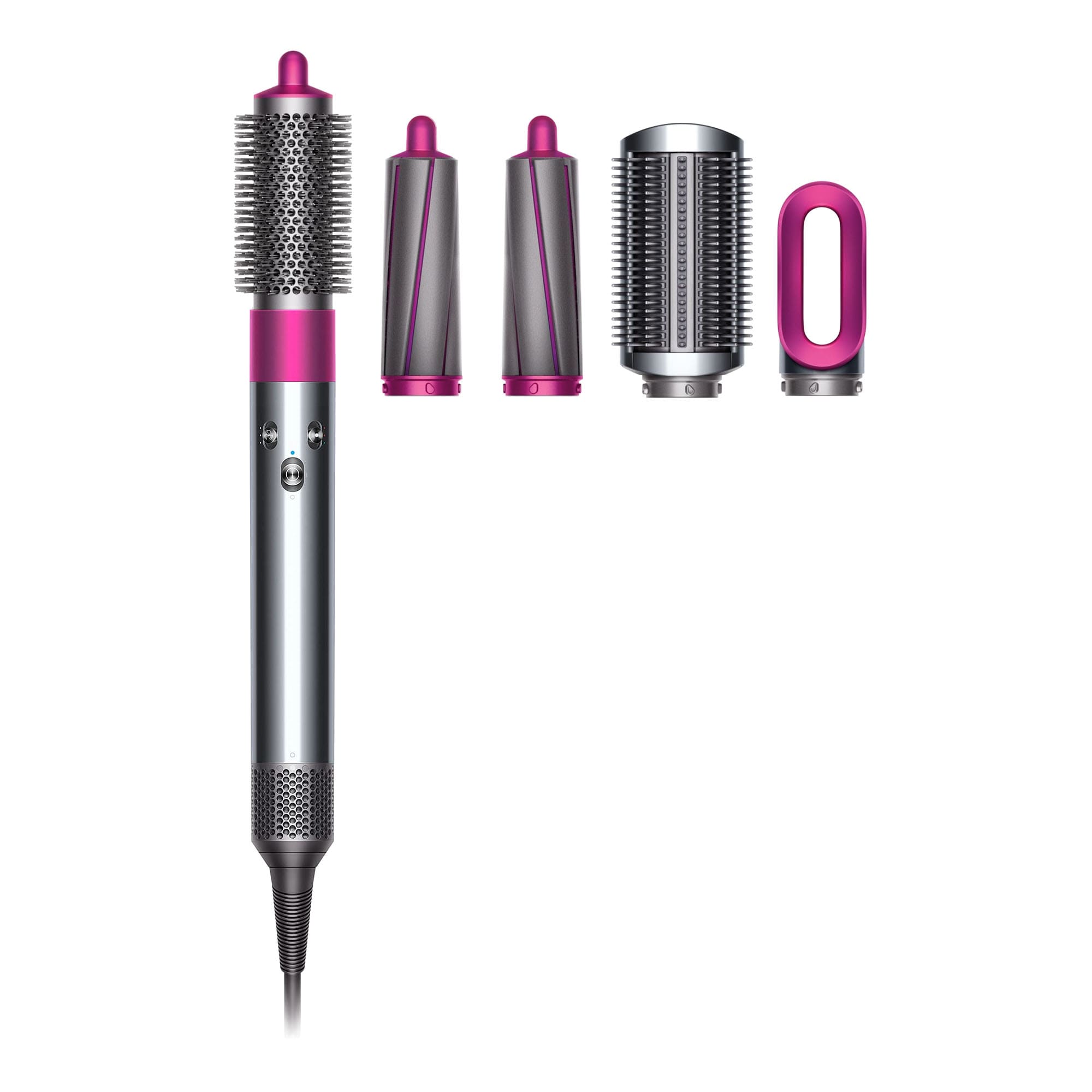 Dyson использует эффект Коанда, чтобы обвить волосы вокруг насадки для укладки и удерживать их там. Создавайте локоны с помощью воздуха, без сильного нагрева.